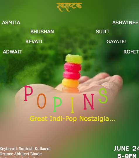 Popins was a show covering the great Indi Pop Hits majorly from the 90s era. The show had a live band accompanied by Drums, Guitar & Keyboard. The night covered the all time indi-pop nostalgic hits like "Purani Jeans", "Dooba Dooba", "Made in India", "Disco Deewane", "Pal" etc. Attended by an effervescent young crowd in their 30s and 40s could relate to their school, college days. Glimpse of the same could be found here.